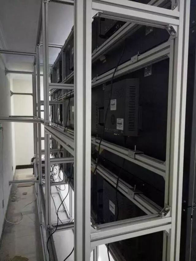立式支架安装的方式,整个拼接屏系统靠支架来支撑,拼接支架要支撑整个系统的重量。这种安装方式要求安装的地面平整,地面足够坚固,而且对于拼接支架的要求也比较高,这样安装利于系统的维护和故障维修。